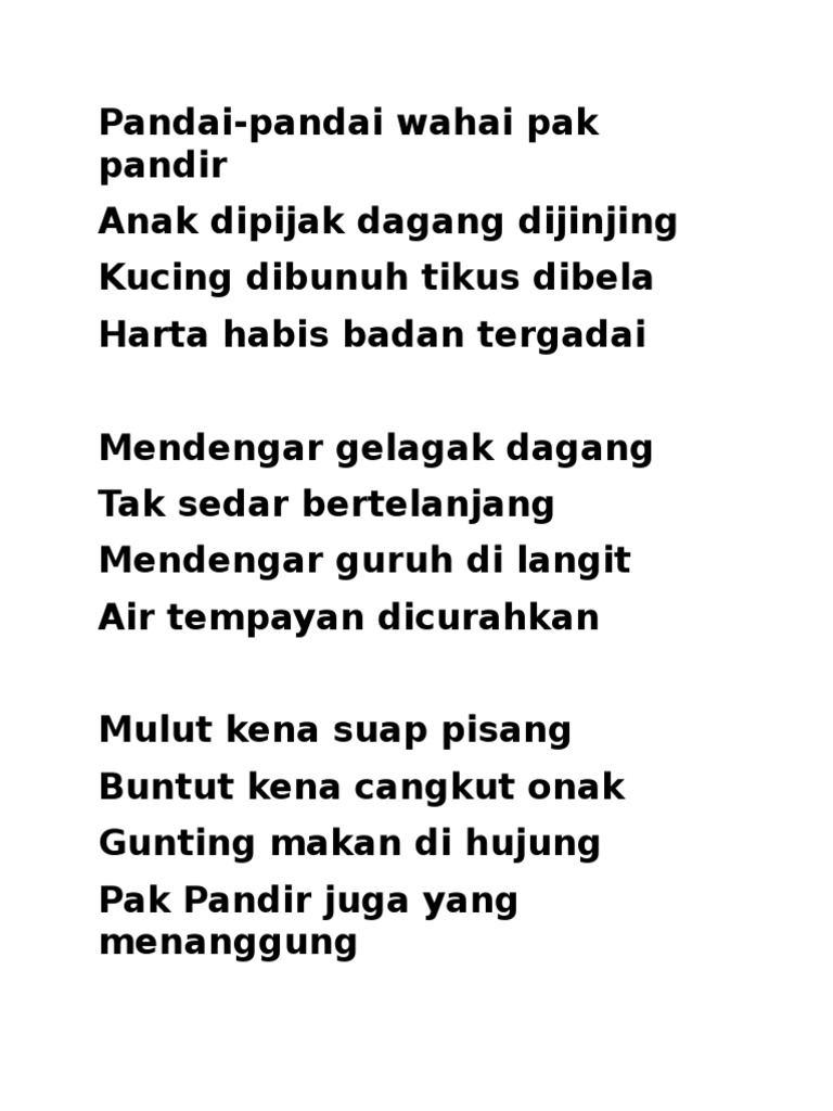 Seloka Pandai Pak Pandir By Ra_Paulina103 01 Sep, 2022 Post a Comment 1 Seloka Pak Pandir Youtube Seloka Pak Pandir Pdf Pak Pandir Pdf 1 Share No comments for "Seloka Pandai Pak Pandir"